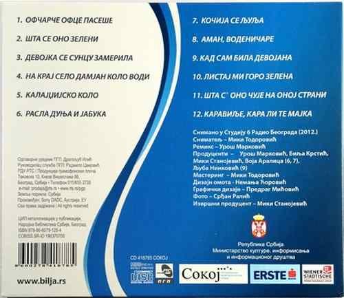 01. Ofcarce ofce pasese 02. Šta se ono tamo zeleni 03. Devojka se suncu zamerila 04. Na kraj selo Danjan kolo vodi 05. Kalajdzijsko kolo 06. Rasla dunja i jabuka 07. Kocija se ljulja 08. Aman vodenicare 09. Kad sam bila devojana 10. Listaj goro 11. Šta s ono cuje 12. Karavilje lale