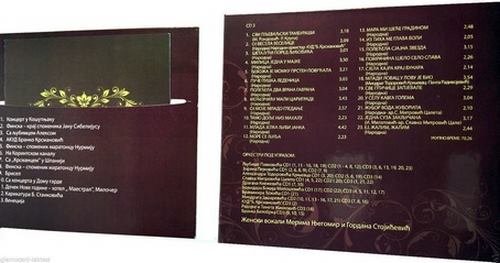 1. SVI PLjEVALjSKI TAMBURAŠI 2. OJ VESELA VESELICE 3. ŠETAJUcI PORED LjUBOVIcA 4. MILICA JEDNA U MAJKE 5. cEVOJKA JE MOMKU PRSTEN POVRcALA 6. PUcE PUŠKA LEDENICA 7. POLEcELA DVA VRANA GAVRANA 8. MOcEVcIcU MALI CARIGRADE 9. OJ MOJE MLADO GLEDANj 10. TAMO DOLjE NIZ MAHALU 11. MLADA JELKA LjUBI JANKA 12. MORE SE LjULjA 13. MARA MI ŠEcE GRADINOM 14. IZ TIHA ME GLAVA BOLI 15. POLEcELA SJAJNA ZVEZDA 16. POMRAcINA CJELO SELO SPAVA 17. SJELA HAJRA KRAJ BUNARA 18. MLADI LOVAC U LOVU JE BIO 19. SVE PTIcICE ZAPJEVALE 20. U SELU KAVGA GOLEMA 21. ŽUBOR VODA ŽUBORILA 22. JEDNA SUZA ZAKLjUcANA 23. EJ, ŽALIM, ŽALIM